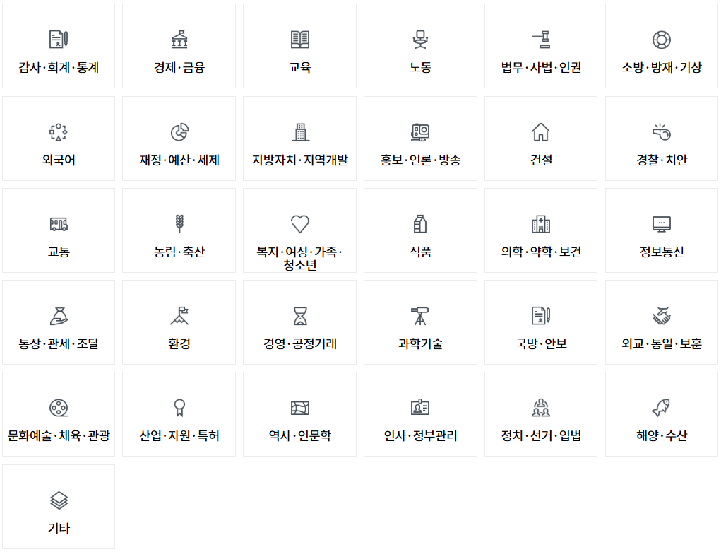 추천 분야: 정부 내 주요 직위 후보자(예: 장·차관, 공공기관장)는 물론, 다양한 정부 위원회 위원 등 특정 분야의 전문가까지 폭넓게 추천할 수 있습니다. 인사혁신처 홈페이지에는 아래와 같이 현재 31개 전문 분야가 명시되어 있어, 추천하고자 하는 인재의 전문성을 바탕으로 해당 분야를 선택할 수 있습니다.