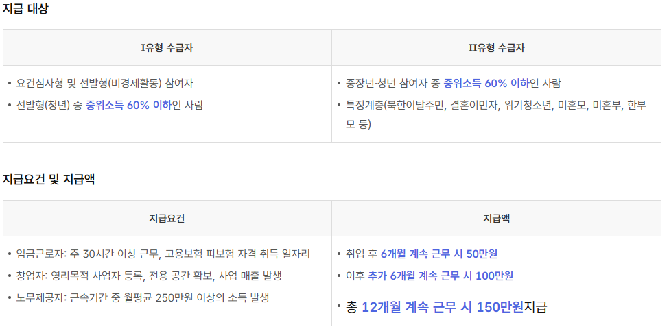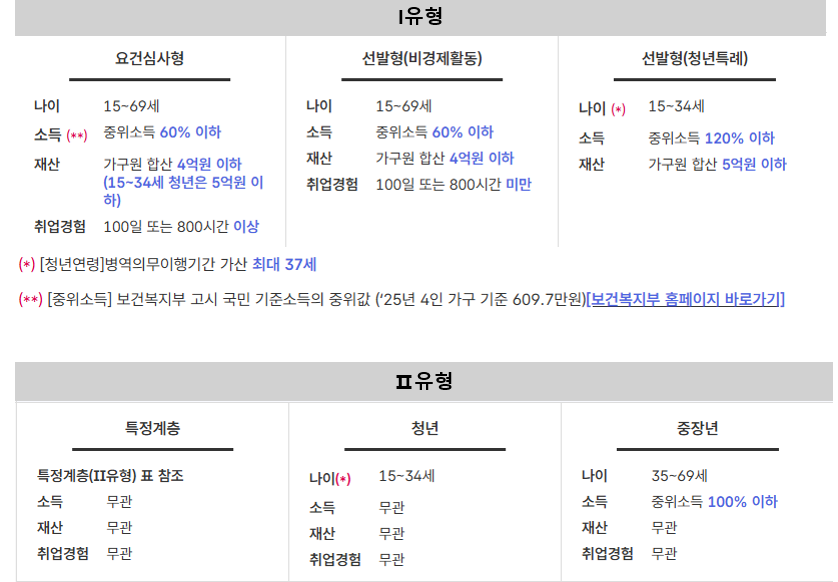 첫째, 유형별 맞춤 지원입니다. 이 제도는 크게 I유형과 II유형으로 구직자를 나누어 소득 수준과 특정 계층 여부에 따라 차등화된 지원을 제공합니다.