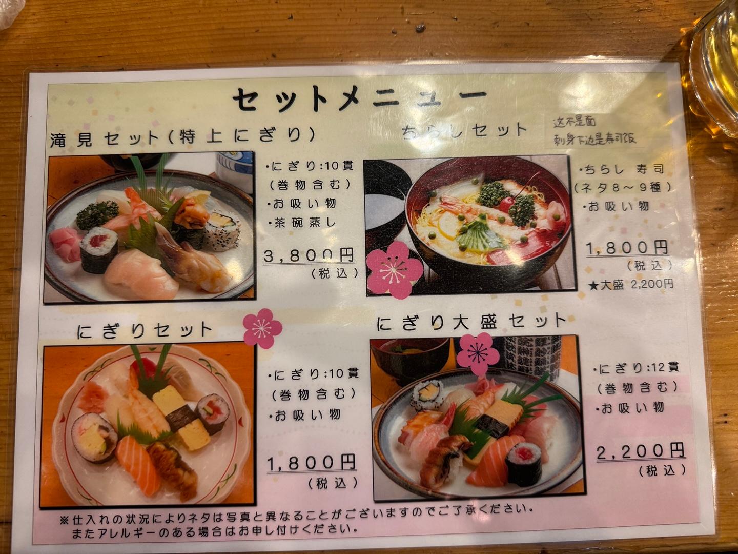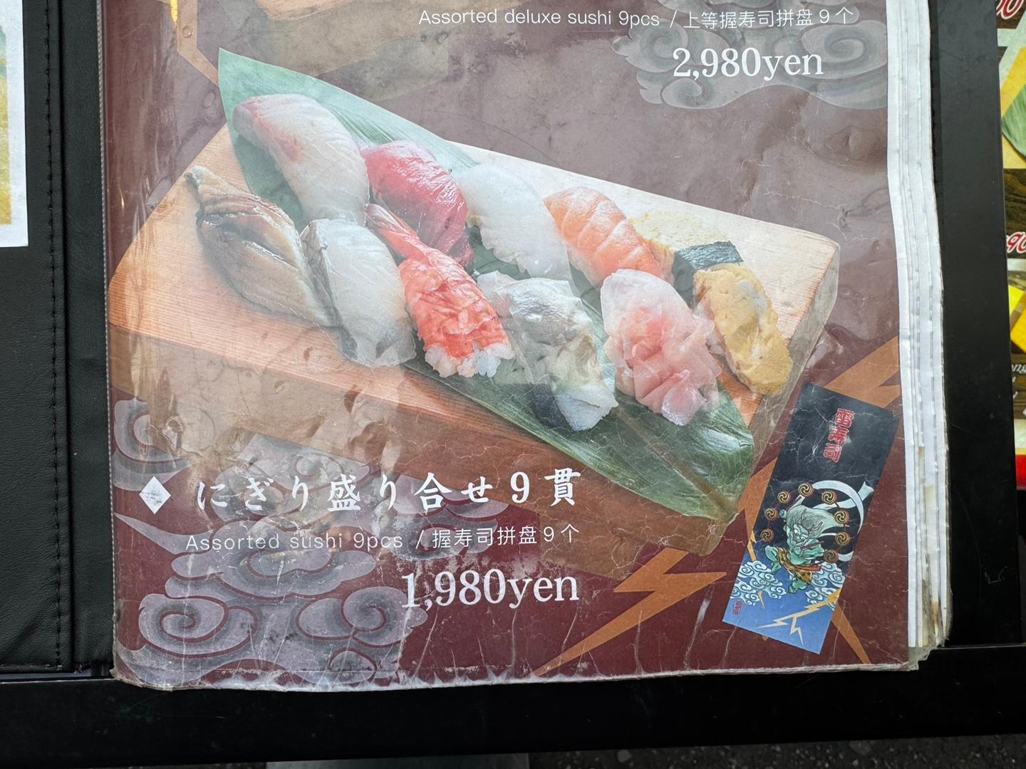 초밥 단품으로 팔고있고, 메인메뉴의 가격은 2,000엔 정도 합니다.