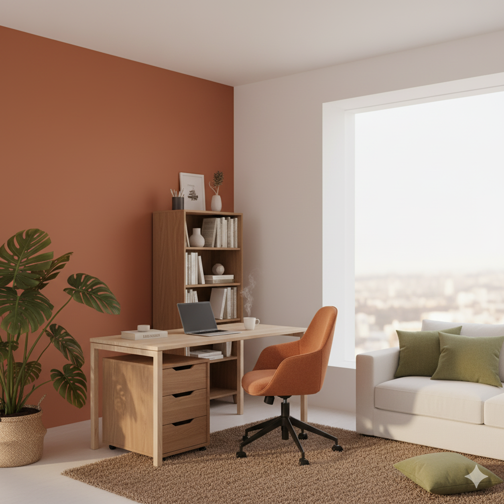 - 벽면: 한쪽 벽을 테라코타 컬러로 포인트