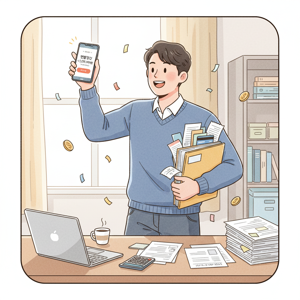 1월: 홈택스 연말정산 간소화 서비스에서 공제 자료를 다운로드하고, 누락된 항목이 있는지 확인합니다. 간소화 서비스에 나오지 않는 항목(안경 구입비, 일부 의료비 등)은 직접 영수증을 수집해야 합니다.