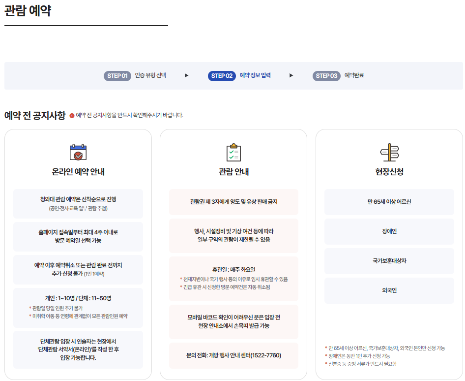 1. 청와대 관람 예약 방법 및 기본 정보