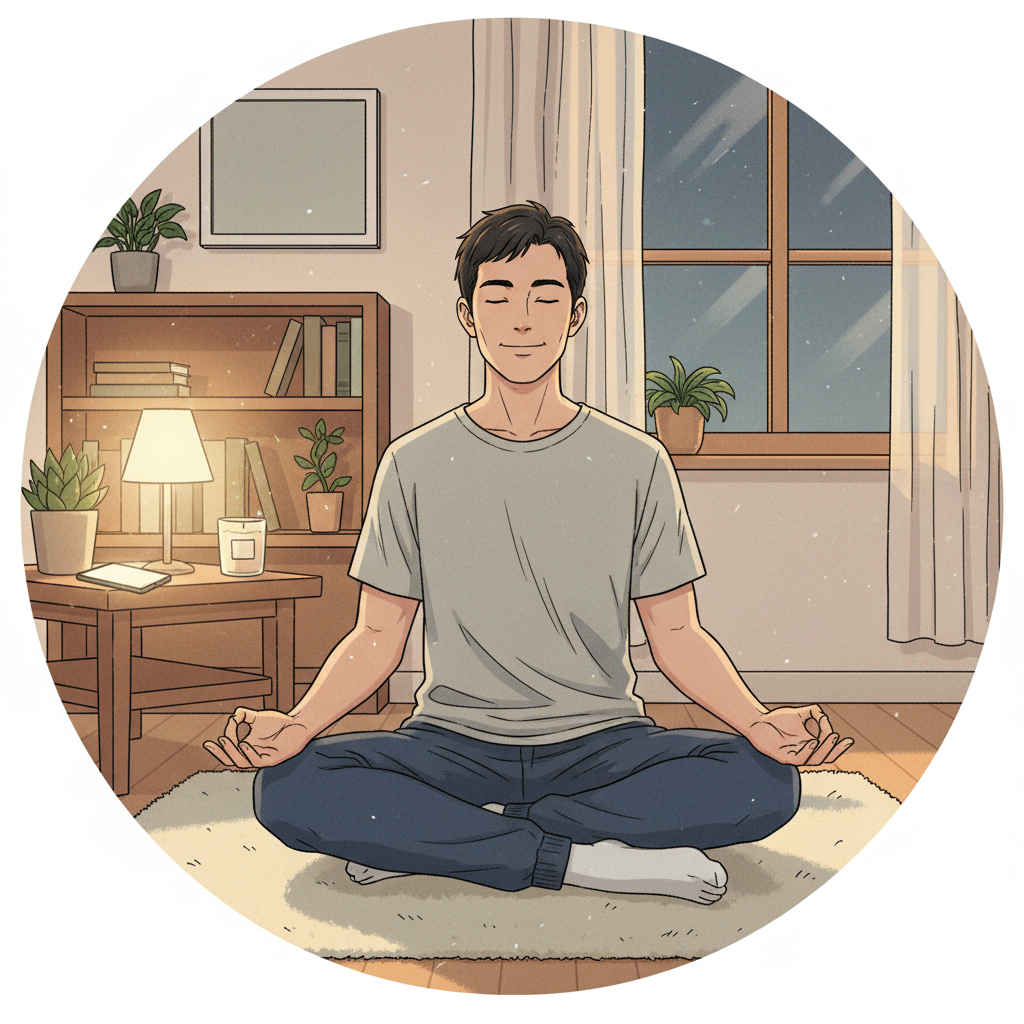 편안한 옷으로 갈아입고, 조명은 은은하게 낮춥니다. 백색 소음이나 잔잔한 음악을 틀어도 좋지만, 가사가 있는 노래는 피합니다. 조용한 환경이 가장 이상적입니다.
