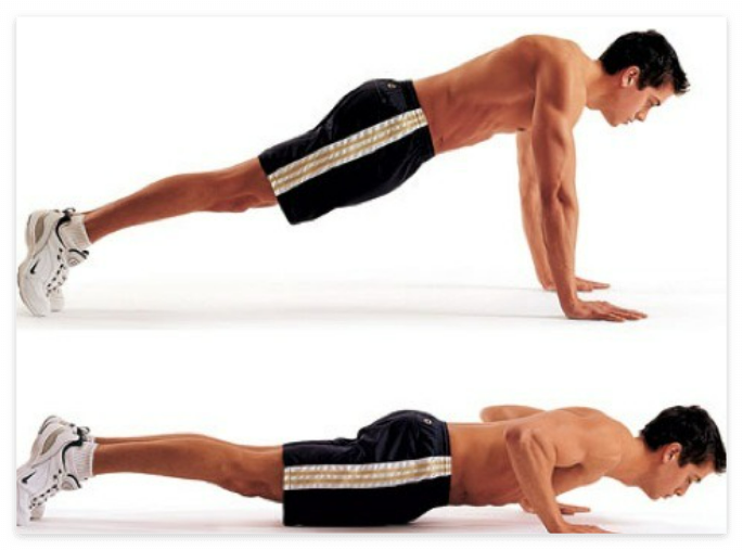 방법: 어깨너비보다 약간 넓게 손을 바닥에 짚고, 발끝으로 몸을 지탱하여 엎드립니다. 몸통을 머리부터 발끝까지 일직선으로 유지하고, 코어에 힘을 준 상태에서 팔꿈치를 굽혀 가슴이 바닥에 가까워질 때까지 천천히 내렸다가 가슴 근육을 짜는 느낌으로 팔꿈치를 펴면서 다시 올라옵니다. 팔에 힘이 없는 경우 무릎을 바닥에 대고 8~10회 3세트 정도로 시작하고, 익숙해지면 12~15회 3세트로 하면 됩니다.