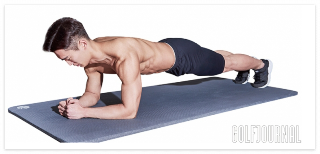 방법: 팔꿈치를 어깨 바로 아래에 두고 엎드린 자세에서 발끝과 팔꿈치로 몸을 지탱합니다. 머리부터 발끝까지 몸통을 일직선으로 유지하고, 배꼽을 등쪽으로 당기는 느낌으로 복근에 힘을 주어 허리가 꺾이거나 엉덩이가 들리지 않도록 주의합니다. 전신에 힘을 주고 버티는 것에 집중합니다. 운동을 처음한다면 20~30초 유지하는 3세트도 힘들것 같습니다. 운동이 약간 익숙해지면 60초 3세트로 조정하면 됩니다.