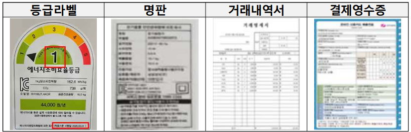 | 주요활동 | 환급 대상 제품 확인 후 제품 구매 | 구매증빙자료 및 제품 사진 업로드 ( 거래내역서, 영수증, 등급라벨, 명판사진) |